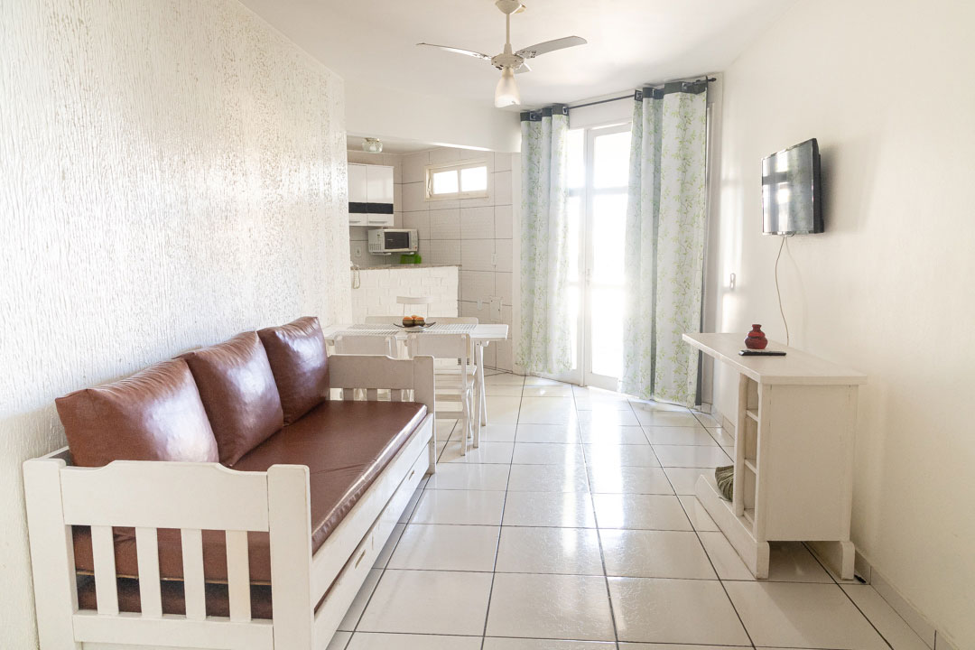 Sobre os apartamentos standards, todos com ar-condicionado nos quartos, roupas de cama e banho inclusas, banheiros privativos, cozinha compacta com geladeira e utensílios, sala com TV e ventilador.